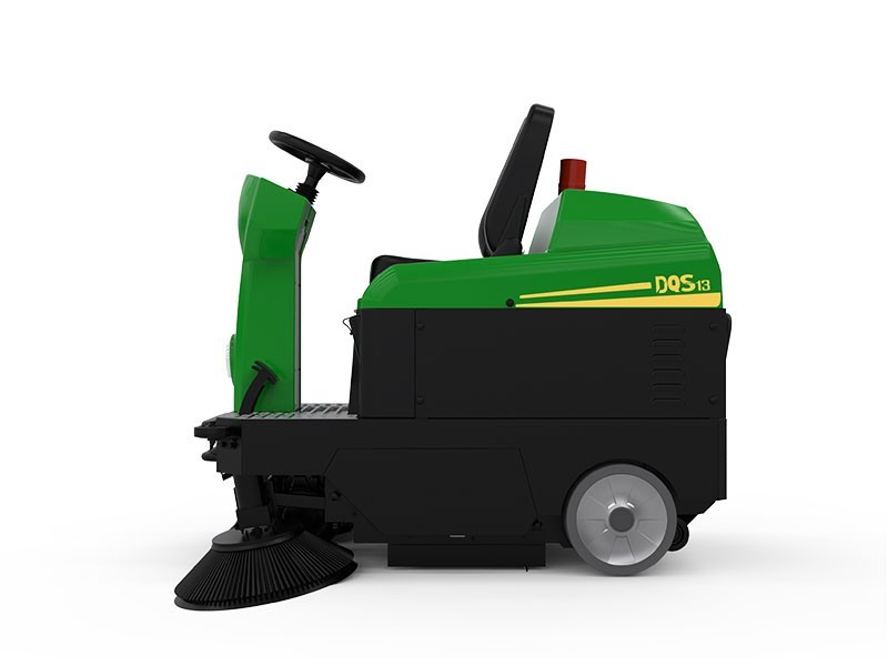 DQS13,驾驶式扫地机前驱驱动,转弯半径更小,结构紧凑,体积小,操作灵活自如,带ECO节能模式,一键启动,操作方便,有效增加续航配,40L容量水箱,可通过高压喷雾降尘,防止二次扬尘,采用油压双碟刹刹车系统,采用专利刮尘方式,安全且控尘能力更加强大。