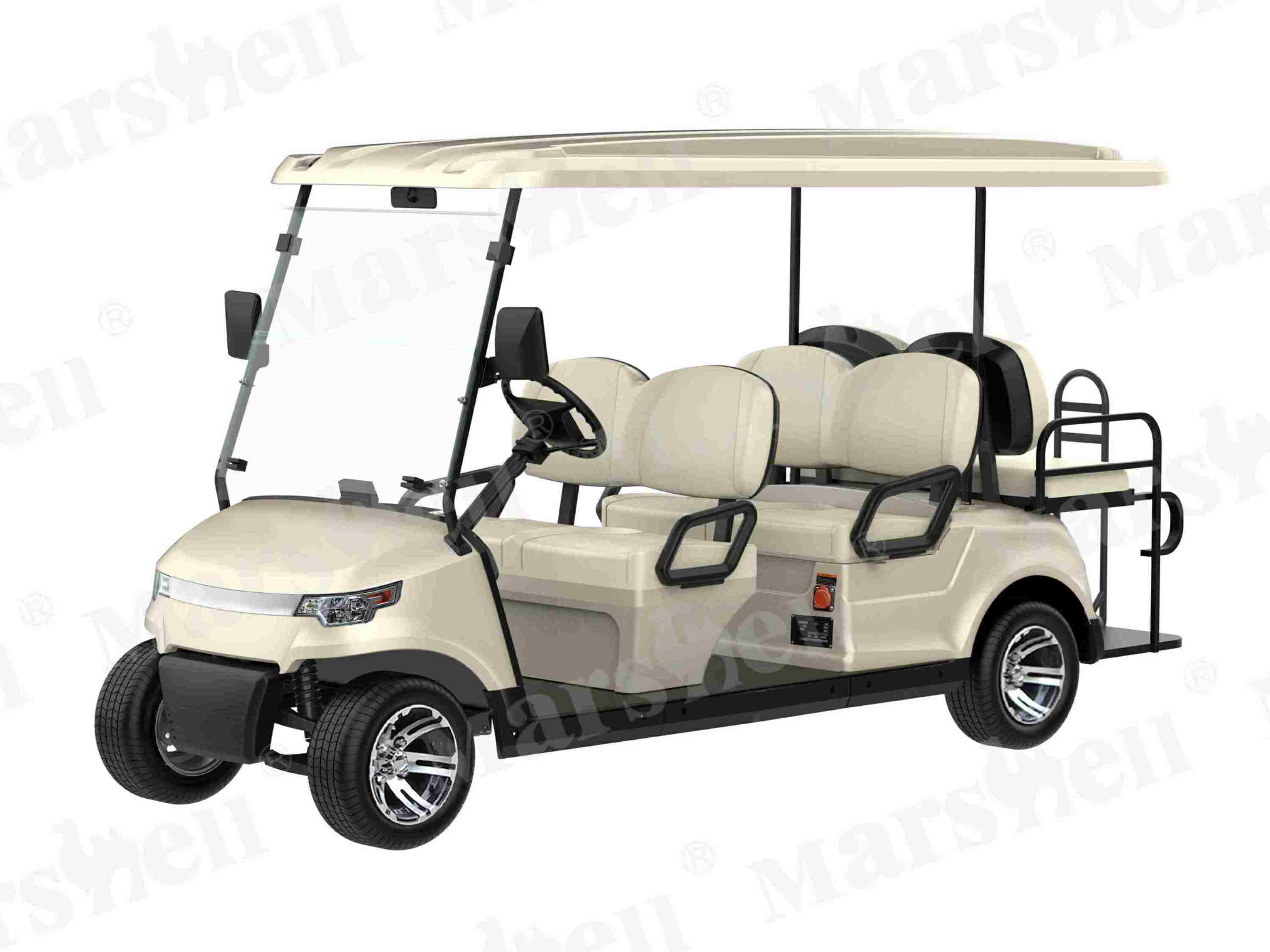 玛西尔4+2六座电动高尔夫球车,升级外观设计,更具动感和轻奢质感。整⻋性能卓越,采⽤进⼝+自主研发系统,乘坐安全舒适,为⾼尔夫球运动增添更多乐趣的同时,更以不同的⾯貌进⼊到旅游度假区、园区、厂区、校园、大型小区等场所中。支持主题配色、LOGO定制等,联系我们了解电动高尔夫球车价格。