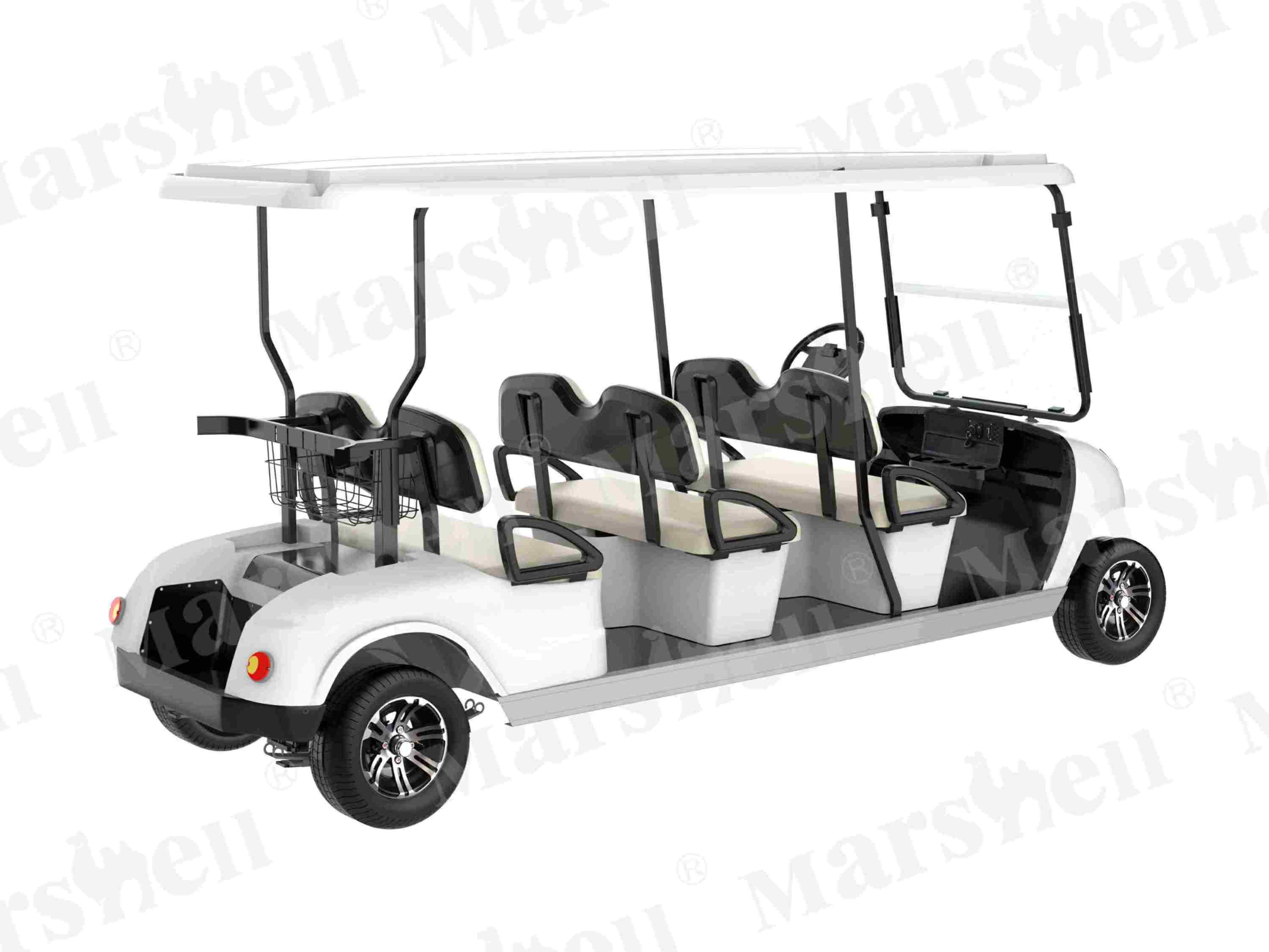 玛西尔六座电动高尔夫球车,外观简约,轻奢质感与⽣俱来。整⻋性能卓越,外观设计新颖、采⽤进⼝+自主研发系统,乘坐安全舒适,为⾼尔夫球运动增添更多乐趣的同时,更以不同的⾯貌进⼊到旅游度假区、园区、厂区等场所中。支持主题配色、LOGO定制等,联系我们了解电动高尔夫球车价格。